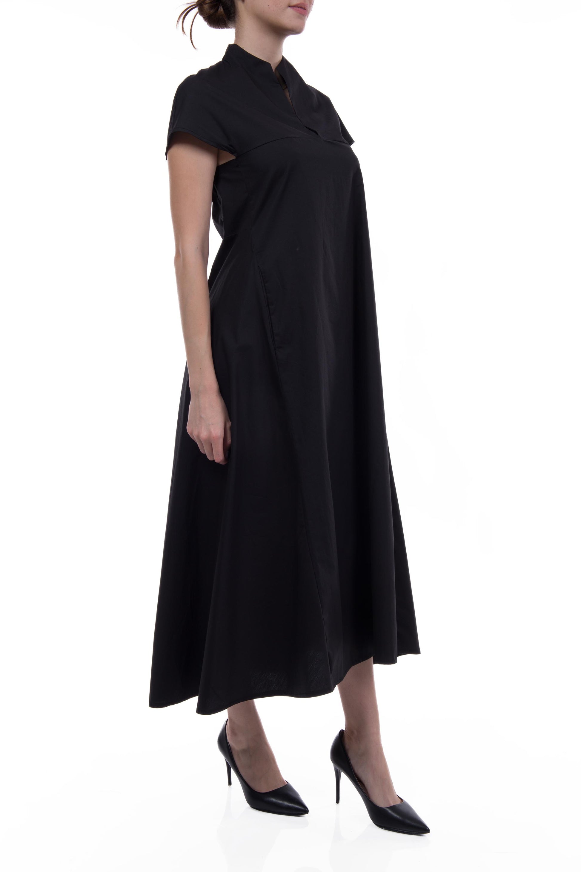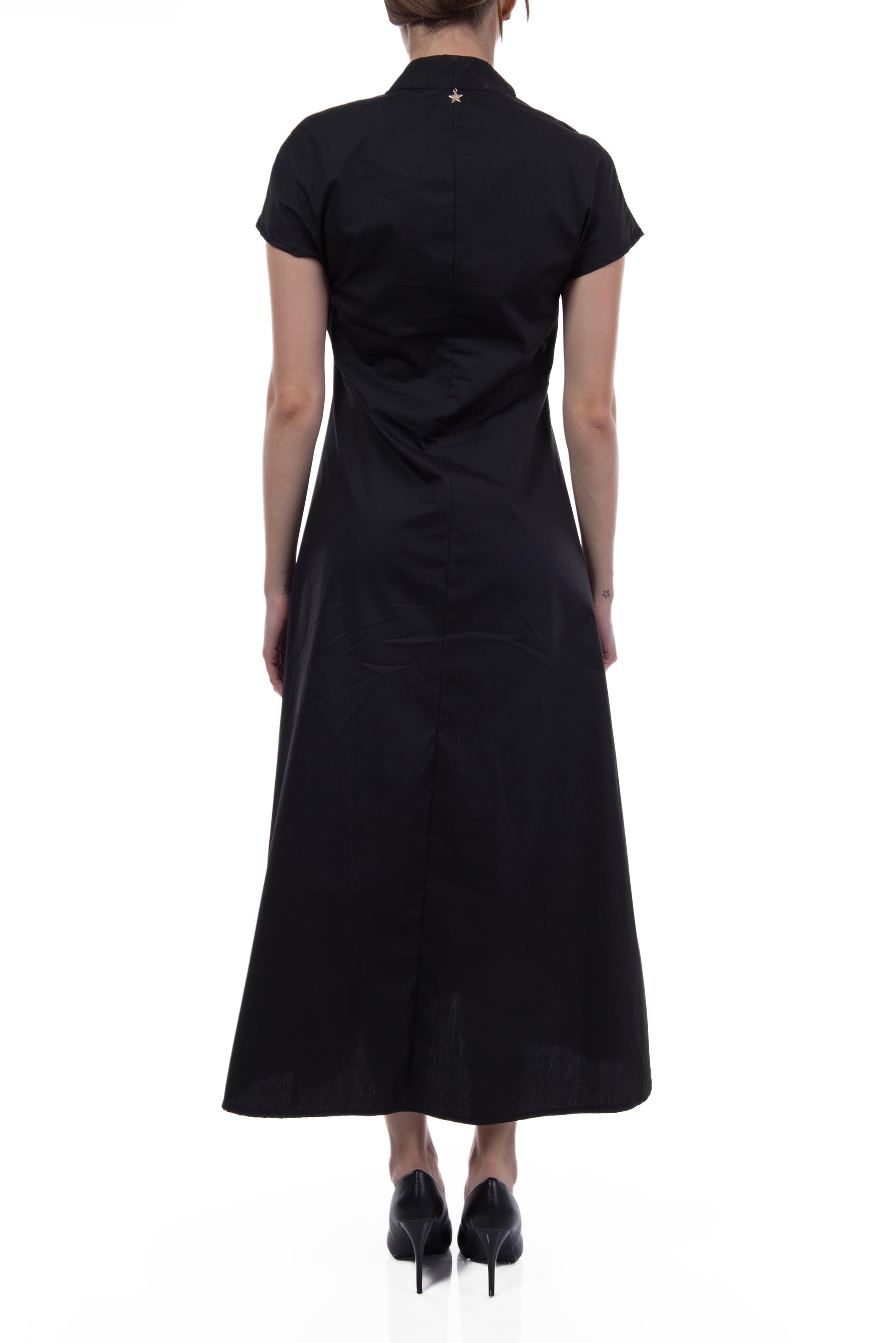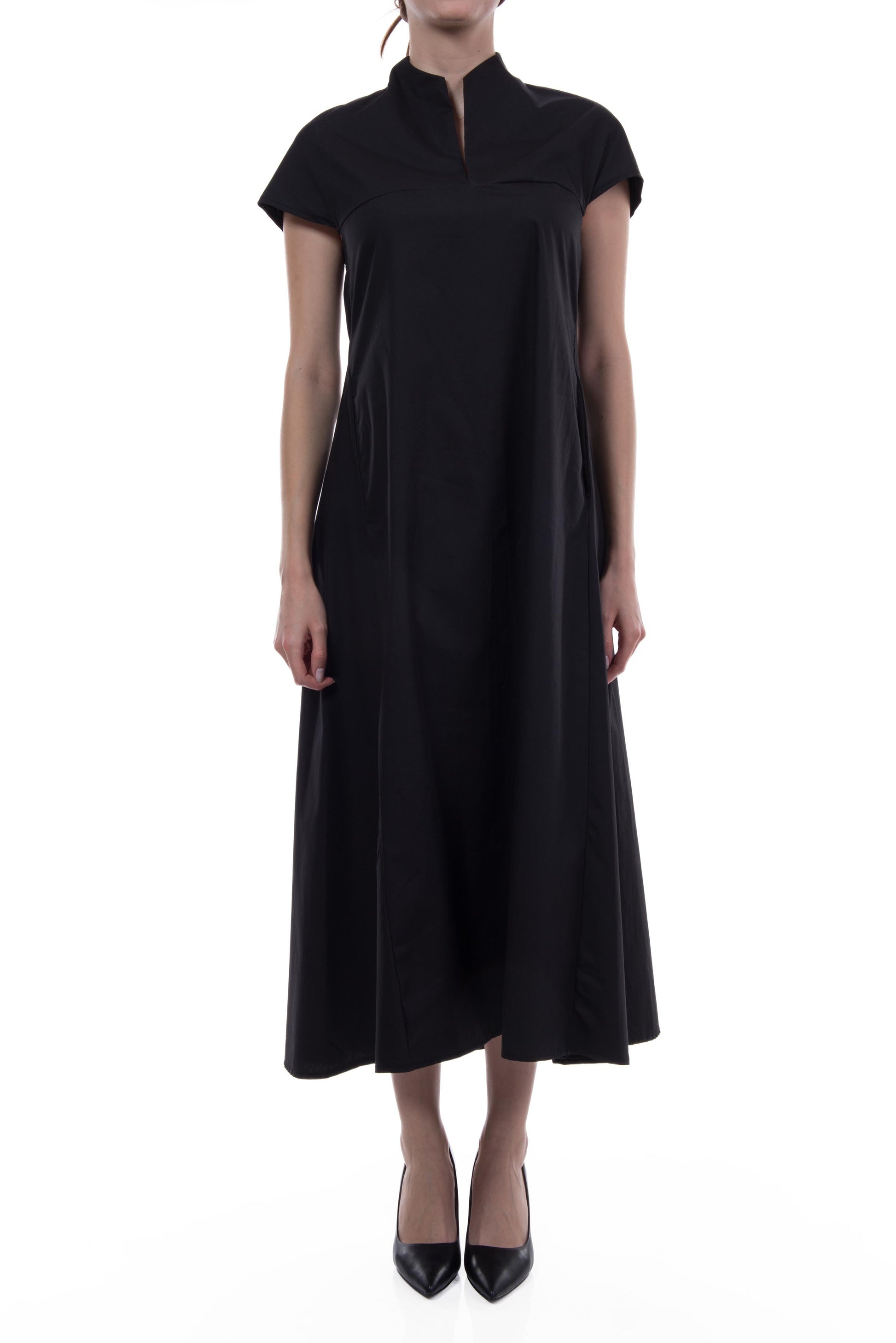 Abito 100% cotone a manica corta con tasche verticali.