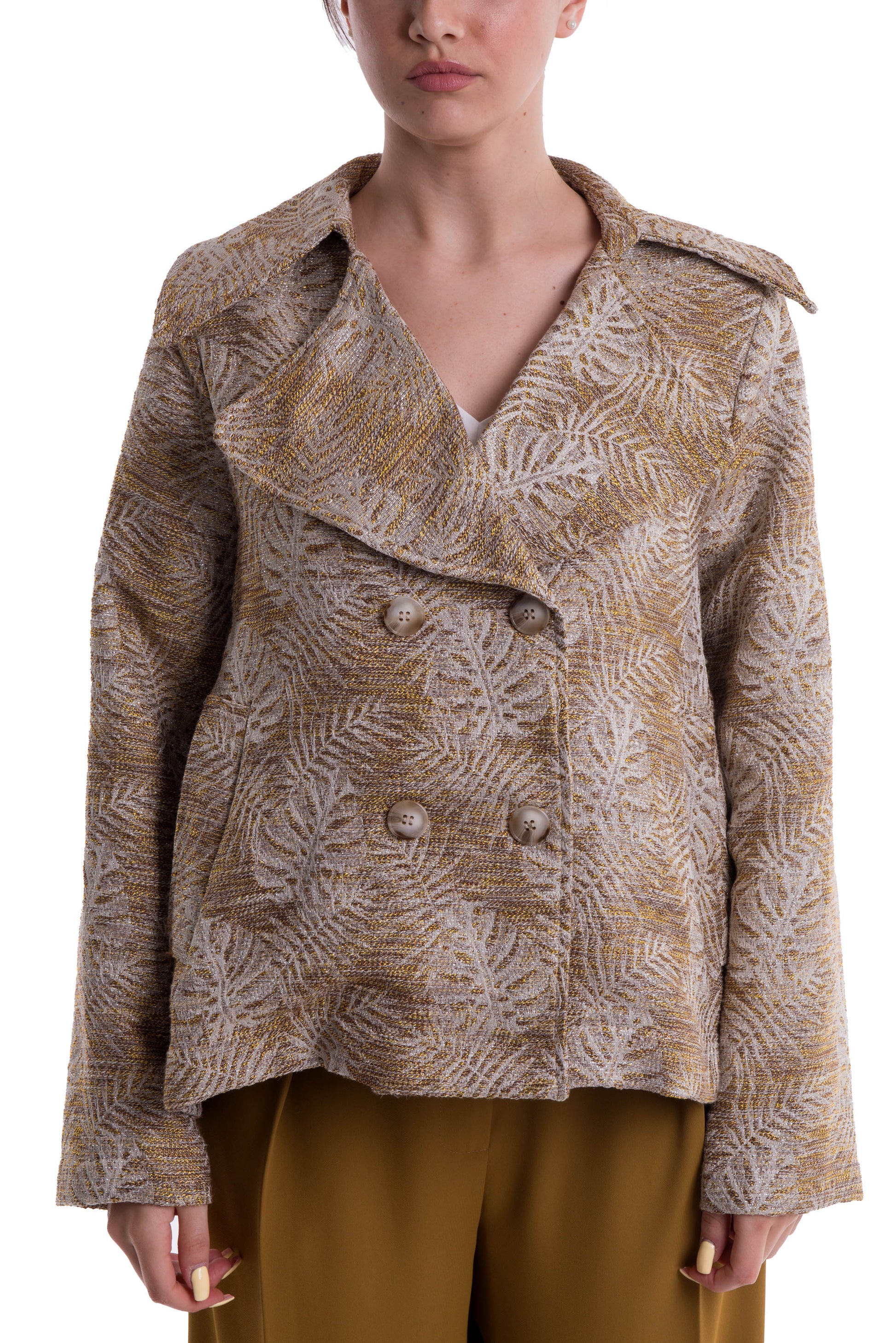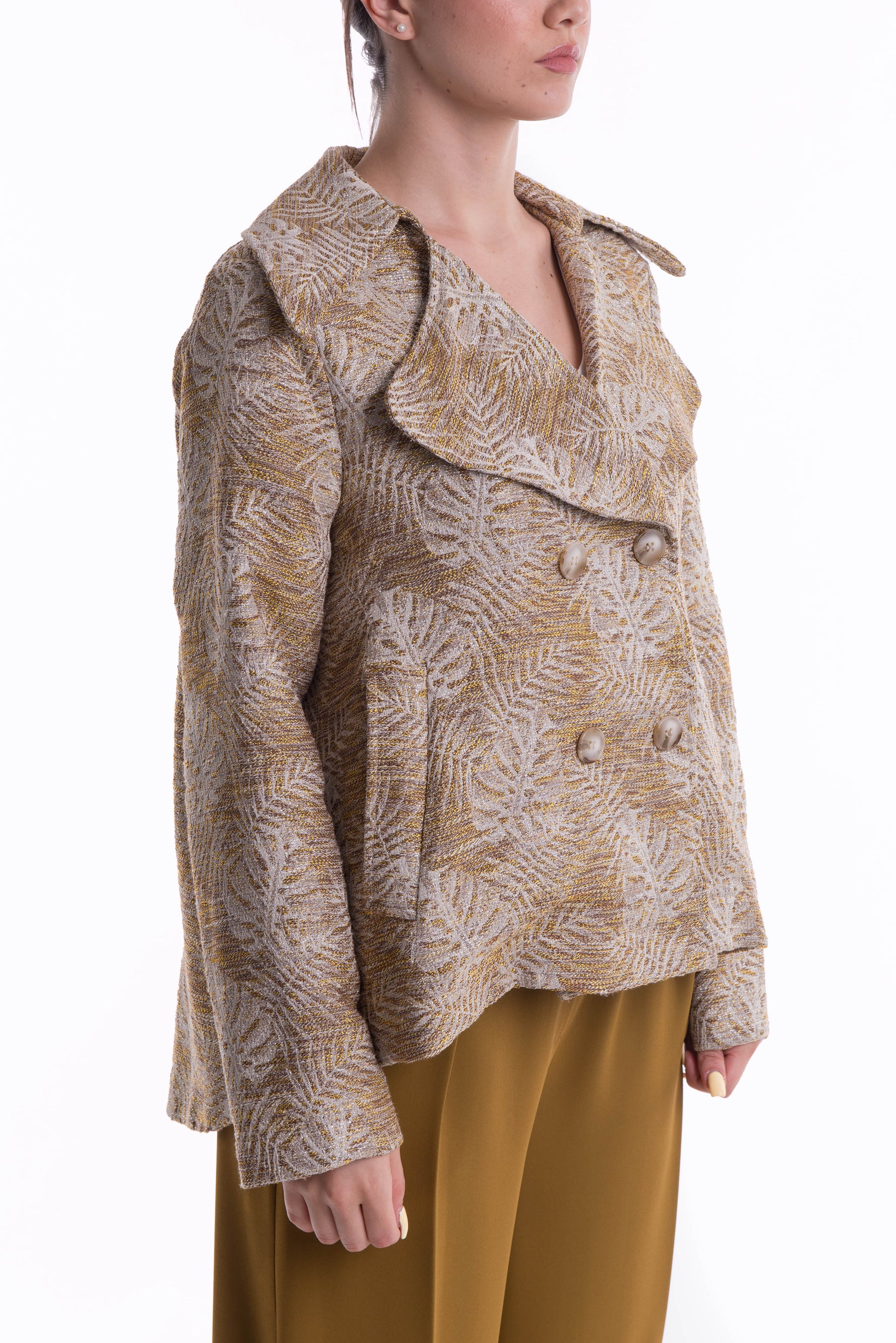 Giacca doppio petto fantasia oro/panna, vestibilità oversize