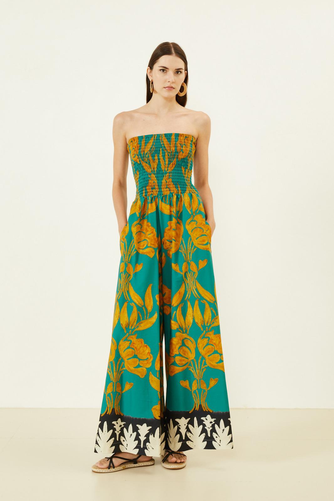 Tuta fantasia, elasticizzata sulla parte del busto , gamba ampia a palazzo